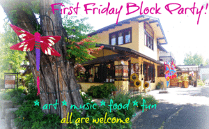 Come on out for First Friday Artwork in the Nature Shop alleyway along with Escape Ashland, and Bestow & Bloom. All are welcome to join the party! We’ll have food – Dos Hermanos taco truck and Wasana Thai – music – Justin Gordon and AAA All-Stars, and community groups – Native Plant Society of Oregon, Siskiyou Chapter. 5-8 pm Friday July 6th.