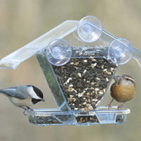 The Aspects Window Café has a clear roof that overhangs the seed tray to protect seed from rain. With a ¾ quart capacity, The Window Café has a seed reservoir that slides out for easy filling and cleaning. Attaches to the window with three sturdy suction cups. UV stabilized polycarbonate construction is backed by a Lifetime Guarantee.