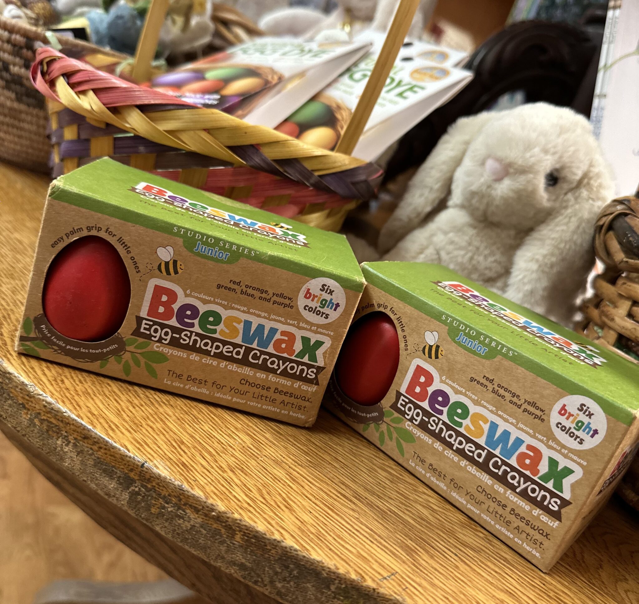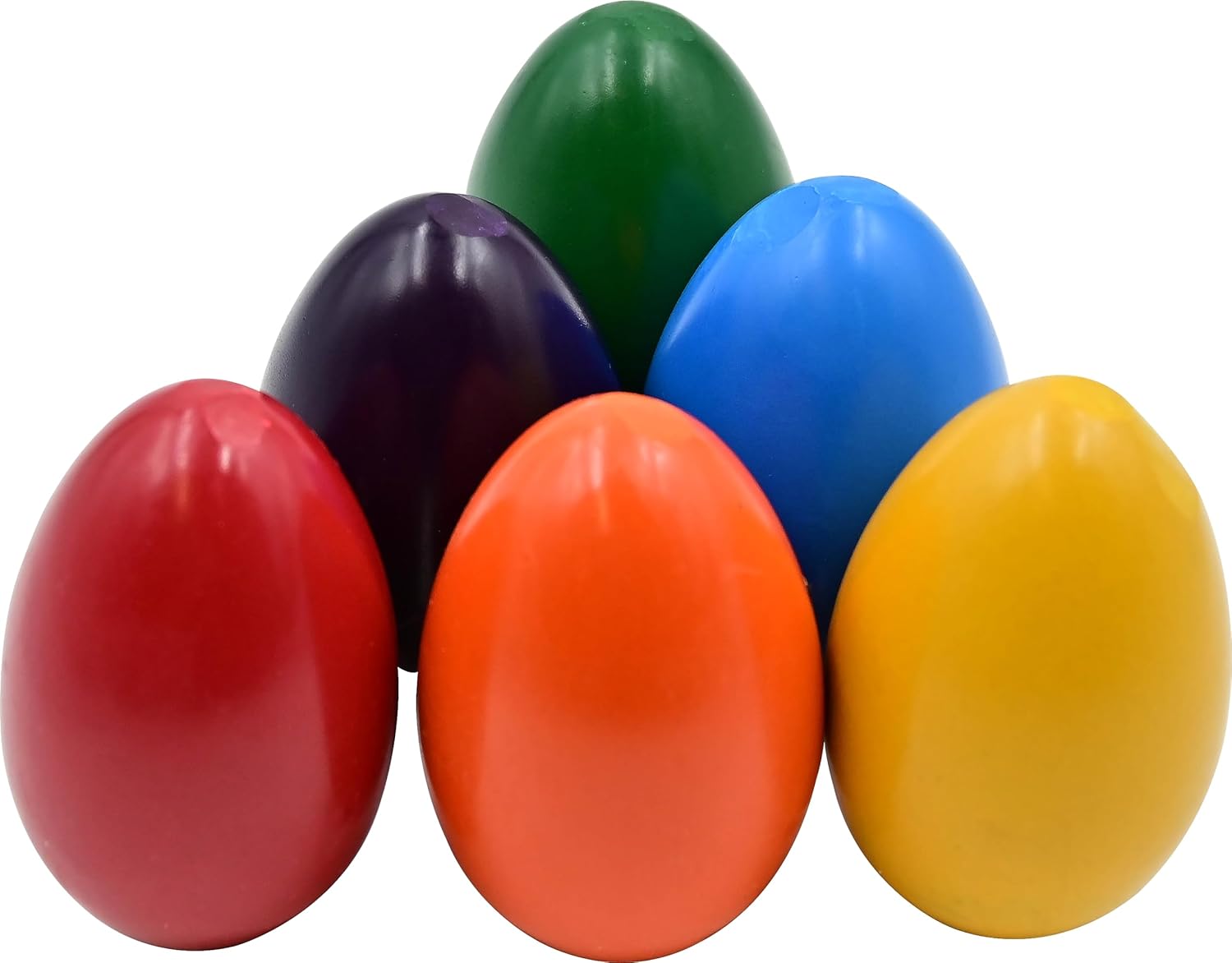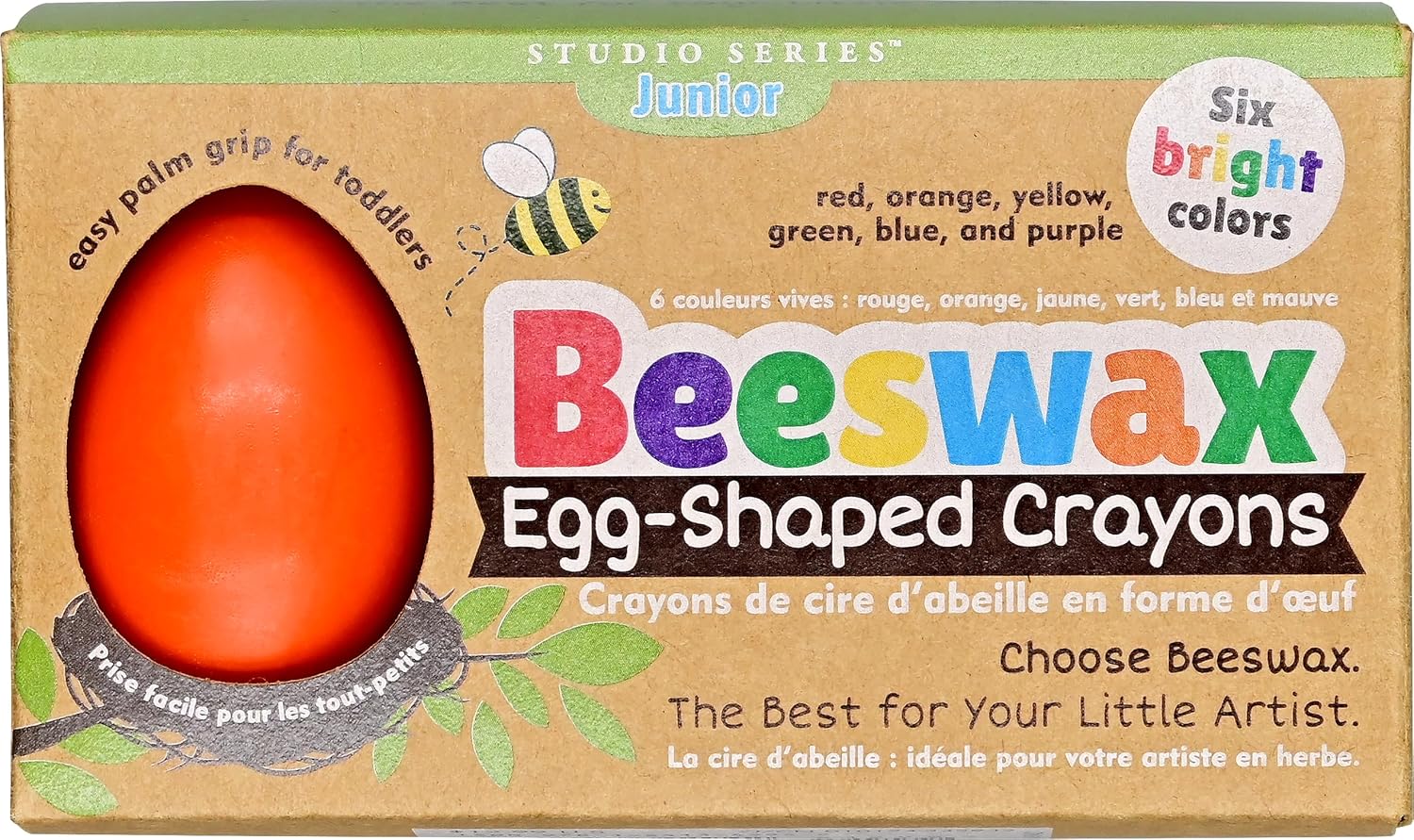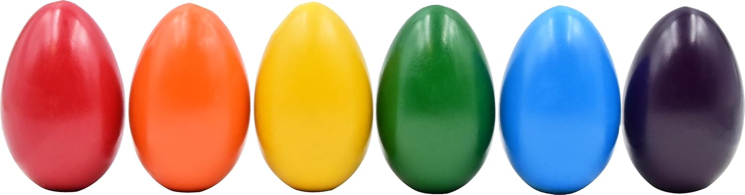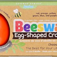 Beeswax Egg Shaped Crayons for ages 12 months and up. Especially designed for toddlers, these fun and functional egg-shaped crayons are easy for little hands to grasp and hold. Unique egg shape provides the control young children need to draw and color. Set of 6 bright, basic colors – red, orange, yellow, green, blue, and purple!