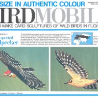 Birdmobile Paper Bird Model – Lesser Spotted Woodpecker has a wingspan of the finished sculpture of approximately 10 inches with a length of approximately 5.5 inches.