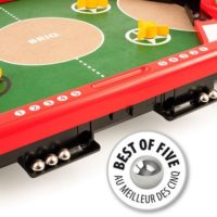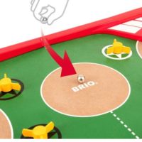 The Pinball Challenge Game is a two-player game from Brio that is exciting and fun! Quickly move the flippers to score a goal against your opponent, and score the best out of five rounds to win. For even more of a challenge, use the spinners to change the speed of the metal marbles and redirect them in unexpected ways. Pinball Challenge Game comes with a hidden container underneath the scoreboard section for easy storage. Great for ages 6 and up, plus no batteries needed.