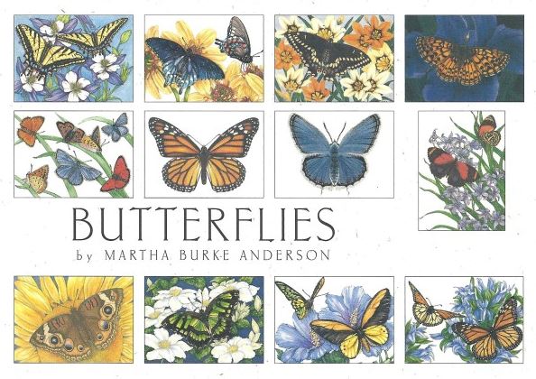 Artist Martha Burke Anderson created these stunning butterfly note cards featuring 12 different designs. Each note card has a unique design, matching envelope, and blank inside making them perfect for personalizing for any occasion. Printed on 100% post-consumer waste recycled paper.