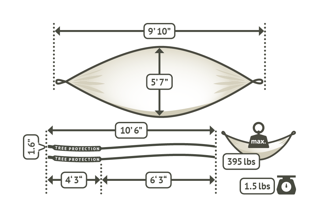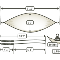 Camping hammock for one to two persons with a seating width of 6 ft 3 in. For a perfect hammock experience, we recommend a diagonal lying position—this creates more surface area (i.e. comfort) by allowing your body to “spread out” and open the cloth surface. Designed with Breathable Nylon Fabric – Nylon Trilobal — a high-quality functional fabric that is durable and fast-drying yet breathable and thin for ultimate comfort. This parachute silk material makes the Colibri Travel hammock the perfect choice for any outdoor adventure. The Colibri’s integrated storage bag is not only ideal for transporting but also serves as a convenient storage compartment for easy access to any of your small travel essentials while relaxing in your hammock. The 40 mm extra-wide tree strap is sturdy, safe, and easy to use—plus it also protects the tree bark by preventing damage from hanging and swinging. Comes with the newly developed CrocodileHooks that are made of ultra-strong airplane aluminum. The CrocodileHook makes hanging and adjusting your travel hammock easy. Thanks to its detachable suspension loops, the Colibri easily transforms into a picnic or beach blanke