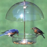 Droll Yankee’s popular Multi-Purpose Domed Feeder is perhaps the most versatile bird feeder available. The tray feeding area is good for pretty much any bird food available even mealworms. Mixed seed works well in tray feeders because birds can easily pick through the seed to find their favorite. The large feeding surface area even makes ground feeders feel at home.