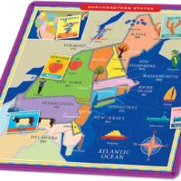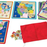 Each bingo card represents a different region of the U.S. beautifully illustrated by Dan Yaccarino. The first player to collect all the chips in their region and shout Bingo wins! The chips feature icons symbolizing key industries and wildlife associated with each state. Additional information about the states can be found on the back of each card. Six game cards, 84 chips and blue cloth bag included. Winner of the Oppenheim Platinum Award. For ages: 5+