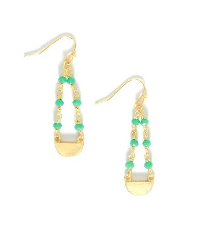 Contribute to positive change in the world of fashion. You promote fair trade practices and economic independence when purchasing these earrings. These earrings effortlessly blend laid-back charm with a bold aesthetic, making them the perfect accessory for any occasion. Earrings measure 2″. Recycled brass-plated metal and glass. Nickel-free.