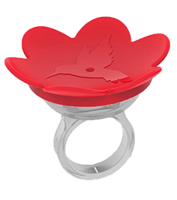 Experience the joy of feeding Hummingbirds right out of your hand with the Hummer Ring! The Hummer Ring Hummingbird Feeder is a simple and easy-to-use design, and easily attacks hummingbirds with its red color. Hummingbirds learn to feed from the ring by placing it in the Trainer and Ring Rest and use the Ring Feeder Easy Fill Syringe to fill the ring with just the right amount of nectar. Once hummingbirds are feeding from the ring, simply place it on your finger and wait for the action to begin! The Hummer Ring is made from light-weight, yet durable and easy-to-clean plastic, so the ring stays light on your finger.