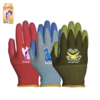 Colorful and washable kids’ garden gloves made with high-quality, durable materials from the trusted Bellingham Glove Company! These gloves feature stretchy nylon material and a natural rubber palm for a great fit and a extra grip. Images of fun animal friends adorn the front of each pair of gloves. Choose your favorite!