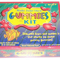 Make Your Own Gummies Kit will captivate any child’s interest in science by learning and doing. All you have to do is wash the seaweed, called Eucheuma cottonii, and boil or microwave it a few minutes until the carrageenan is extracted (this is the secret gel substance). Mix in the sugar, boil or microwave it again, pour into molds and dot with sour mix – that’s it. Yummie gummies in no time! Parent or teacher supervision advised. For ages 8 & up. Each kit makes 10-12 gummies. Enjoy!
