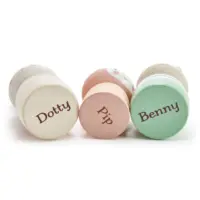 A perfect solid bunny family with Dotty the mum, Benny the dad and Pip the baby, all finished in stylish colors and ready to add to any dolls house set or open-ended play set.