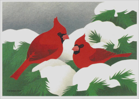Northern Cardinal holiday cards are 4 1/2″ x 6 1/4″ and are printed in the USA on 100% post-consumer waste recycled paper.