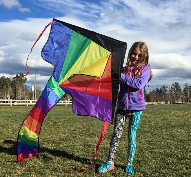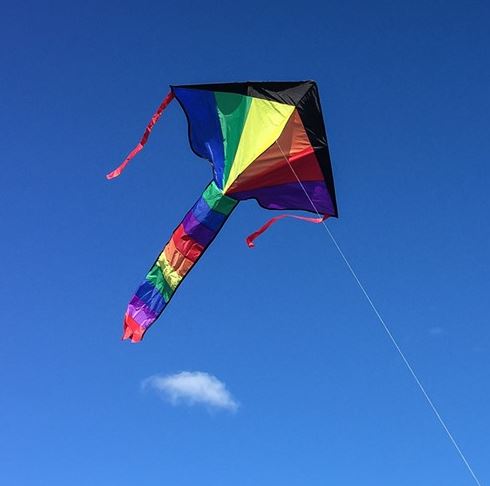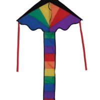 Brighten up the sky with the Rainbow Fly Hi Kite by In the Breeze Kites. This weather-resistant, stable kite will easily soar through the air for hours, making it great for the whole family. The classic shape and two 26-inch streamers make for a fun, acrobatic show. Made with durable rip-stop fabric and fiberglass rods, it is easy to assemble and handle. It even comes with a convenient carrying bag.