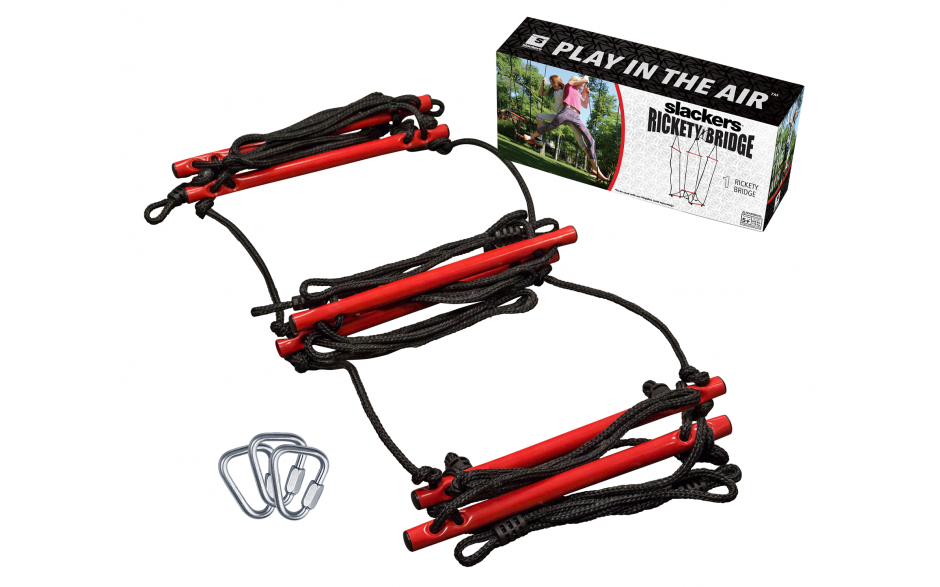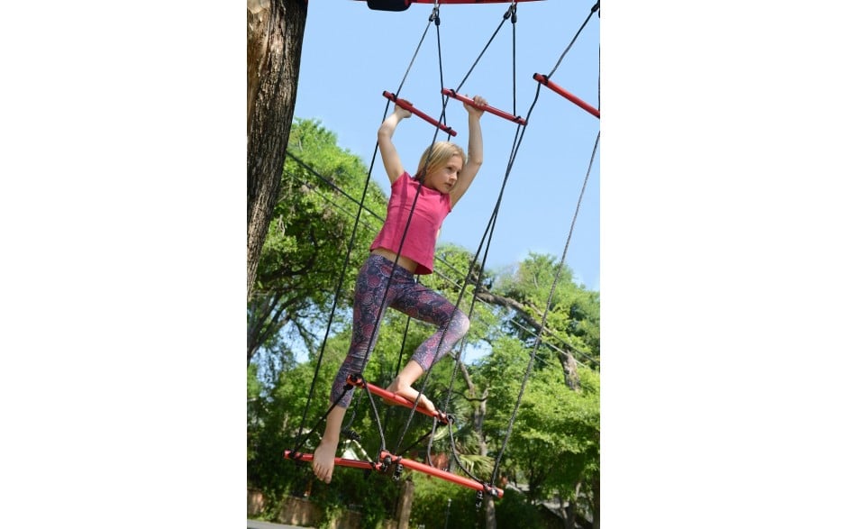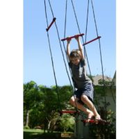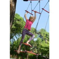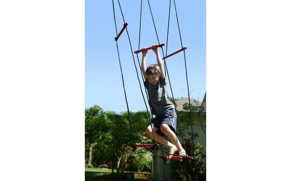 The Rickety Bridge is the perfect balance obstacle to add to the Ninjaline. The top and bottom powder coated steel bars are adjustable for different heights and skill levels. This obstacle mimics the challenge of the “broken bridge” in play pattern, and challenges balance and focus while giving a break to the upper arm strength needed for traditional obstacles. The tunnel perspective of this obstacle offers a mental challenge to navigate through to complete the course! Add multiple bridges to your set for an additional challenge and dynamic training. Adjust the bottom tubes up and down to create different challenges. Hold onto the top bar for additional stability or the ropes only for added challenge.