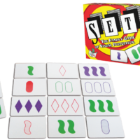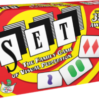 Set cards have symbols with four features: shape, color, number and texture. The goal is to pick sets of three cards based on the rule that each of the four features must be the same on all three cards, or different on each card. It isn’t as easy as it sounds. Set is a fun game to play with different age players because quite often younger players see patterns that older players don’t. It’s popular in schools to exercise pattern perception. Playing set helps kids and adults perceive patterns in a new way. Winner of 12 best game awards. A simple card game that provides hours of family fun. One or more players. Ages 6 to adult. Made in China.