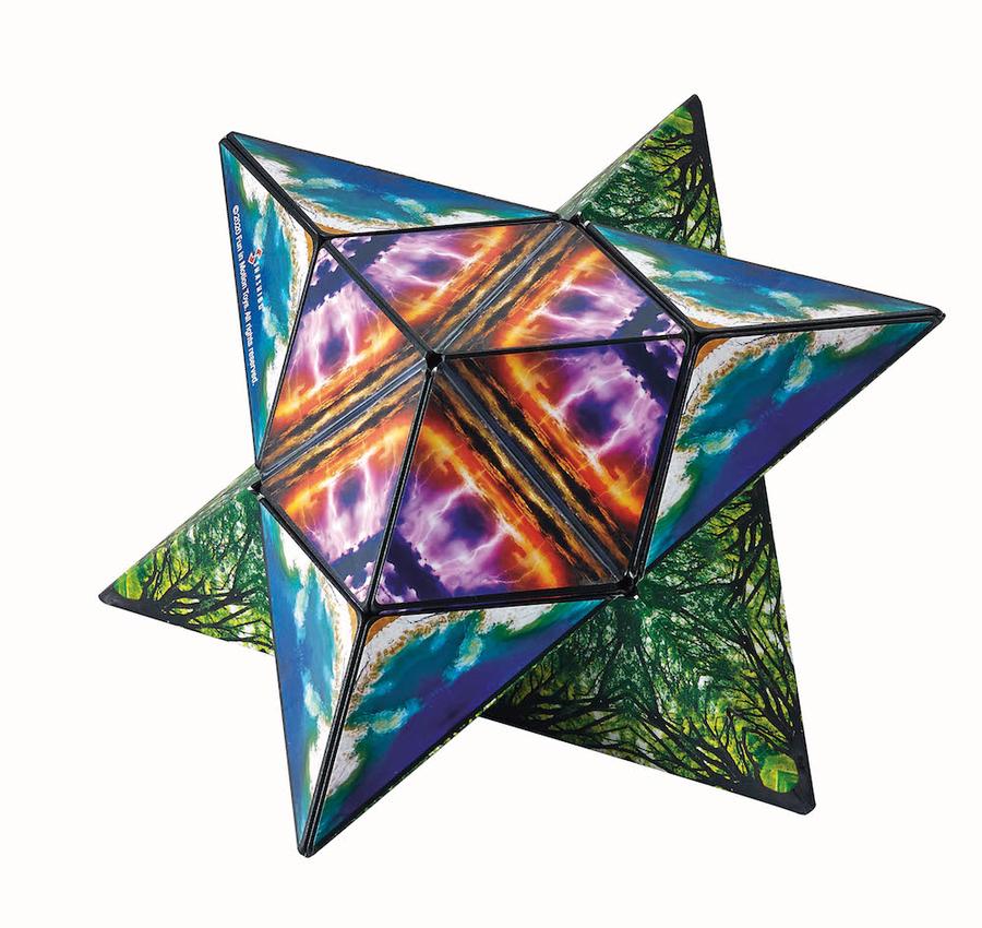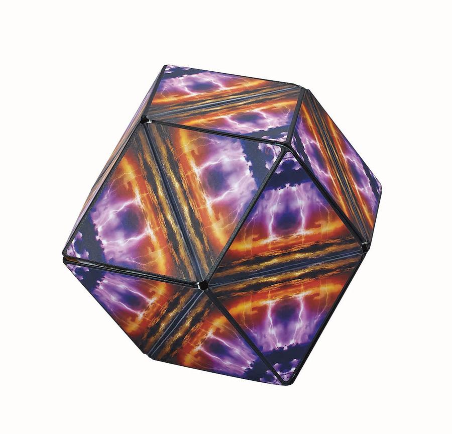 A three-inch cube held together with 36 rare earth magnets, has a pattern on the outside and three on the inside. Shashibo is something to fidget with and stimulate your mind. With twists and turns, you can form 70 geometric designs. Combine 2 or more Shashibos to build larger shapes and create more possibilities.