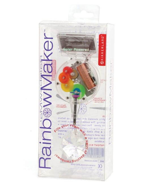 This is one of the best rainbow producing items we’ve found. The Solar Powered Rainbow Maker is a fun gift that fills a room with a circulating swirl of dazzling rainbows. The solar panel provides power to the copper-spindle motor. The motor turns the glass crystal. The motor’s components are encased in a transparent gear box so you can see the brightly colored gears in action! The Solar Powered Rainbow Maker has an attached suction cup so it can be placed in any window where there is sunlight. It makes a great conversation piece for educators teaching about science, prisms and electricity.