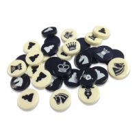 All playing pieces neatly fit in the zippered pocket for easy and reliable storage and transport. 16 playing pieces per color are: 1 x King, 1 x Queen, 2 x Castles (Rooks), 2 x Bishops, 2 x Knights and 8 Pawns. Playing pieces are 2cm in diameter (about the size of a penny).