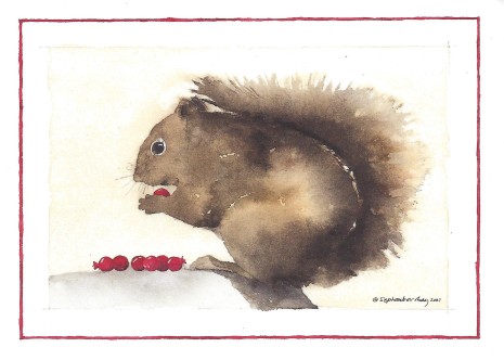 Squirrel with Rosehips Holiday Card Set of 10